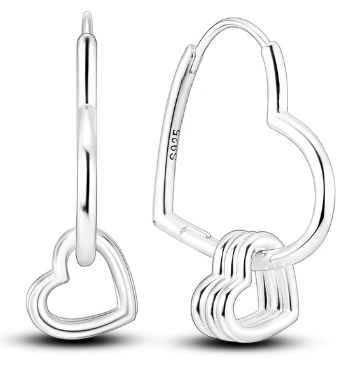 Sterling Silver Heart Shaped Hoops with Heart Fidgets