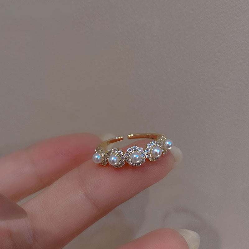Beautiful Shell Pearl Flowers Adjustable Ring