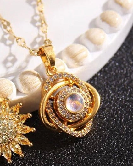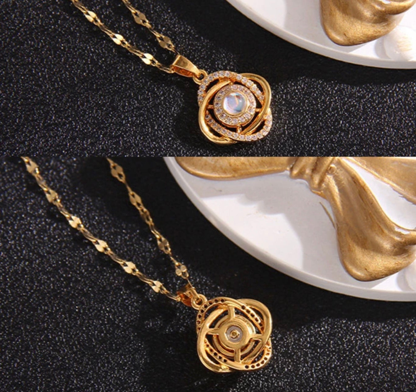 Stainless Steel Double Hoop Centre Circle Rotating Necklace