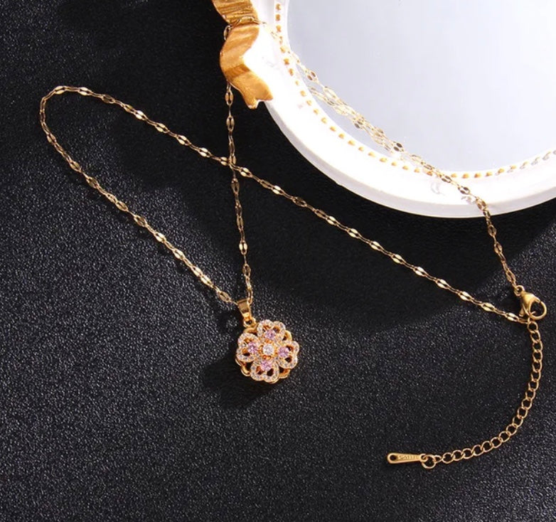 Stainless Steel Flower Gold and Pink Rotating Necklace