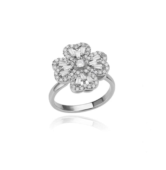 Stainless Steel Flower Silver Spinner Adjustable Ring