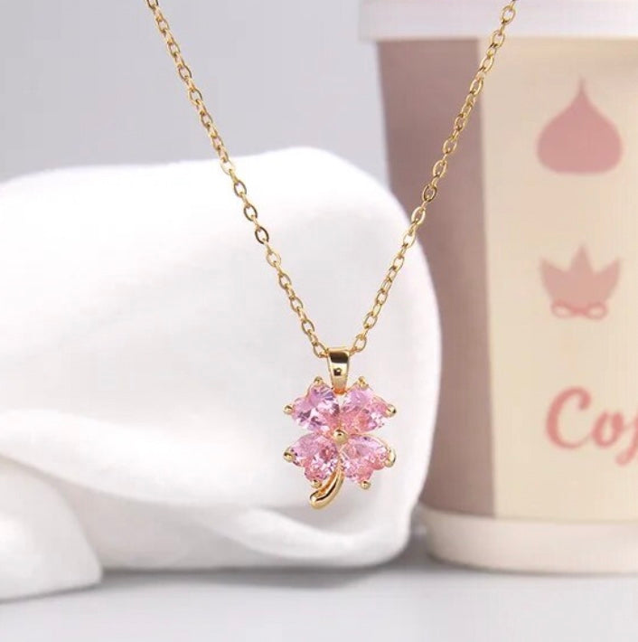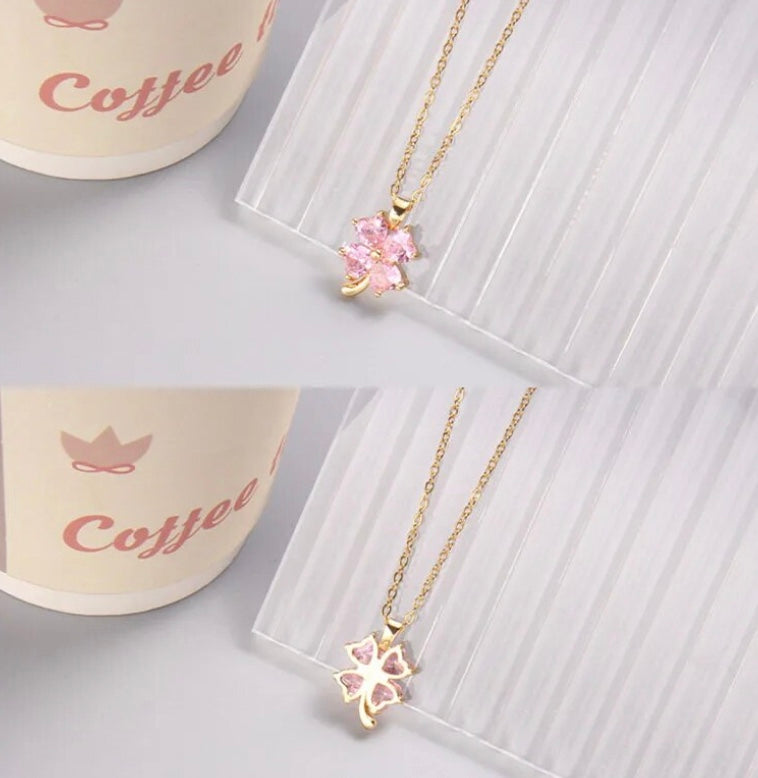 Stainless Steel Pink Leaf Necklace