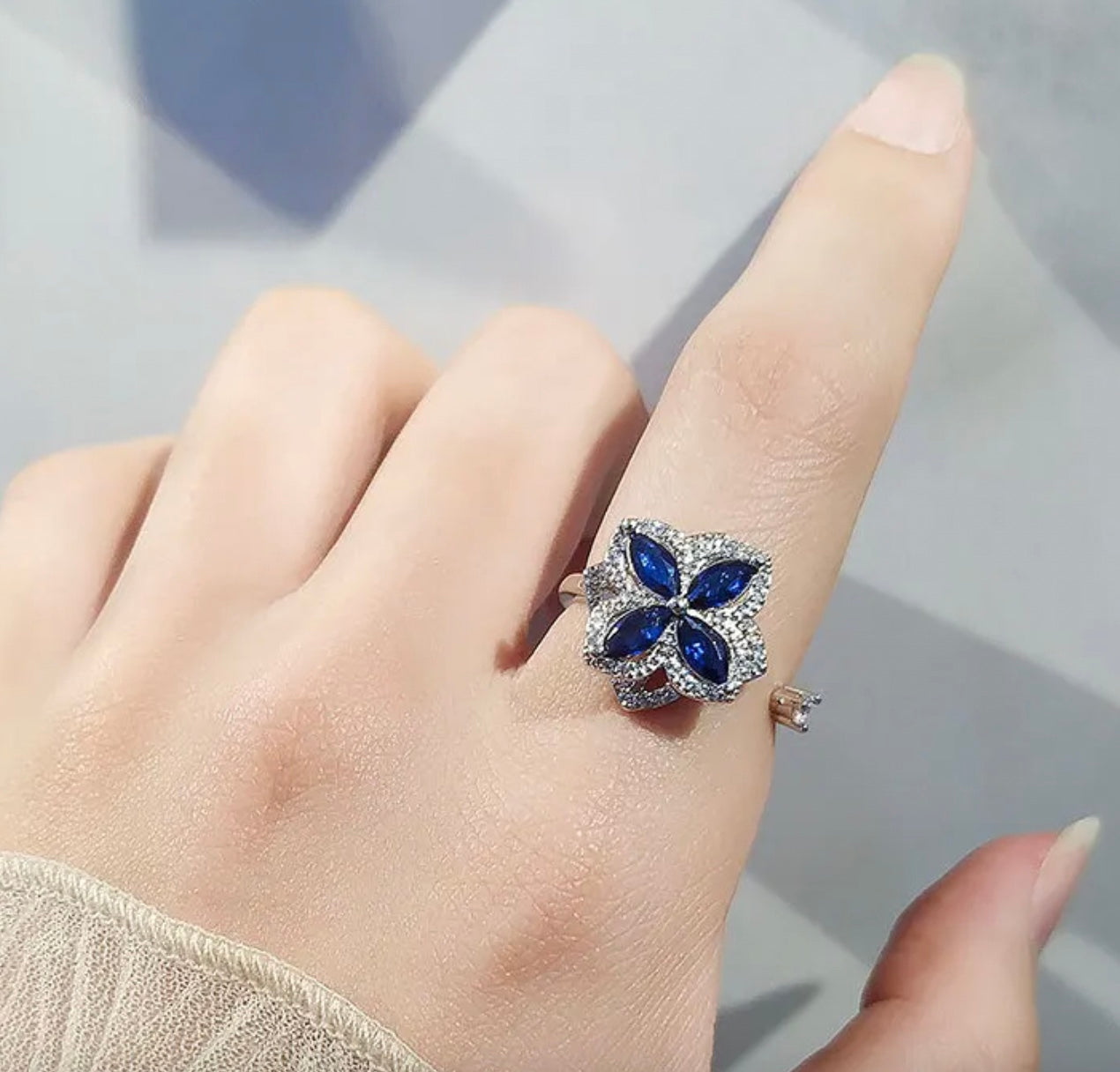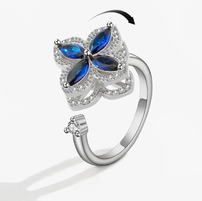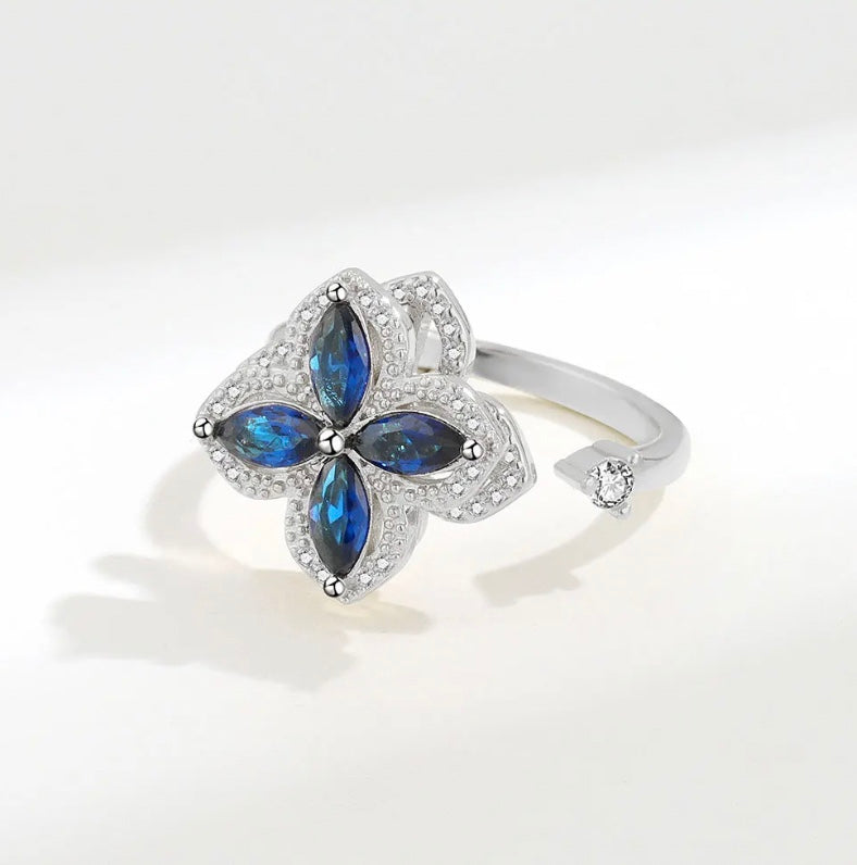 Sterling Silver Blue Flower Spinner Adjustable Ring