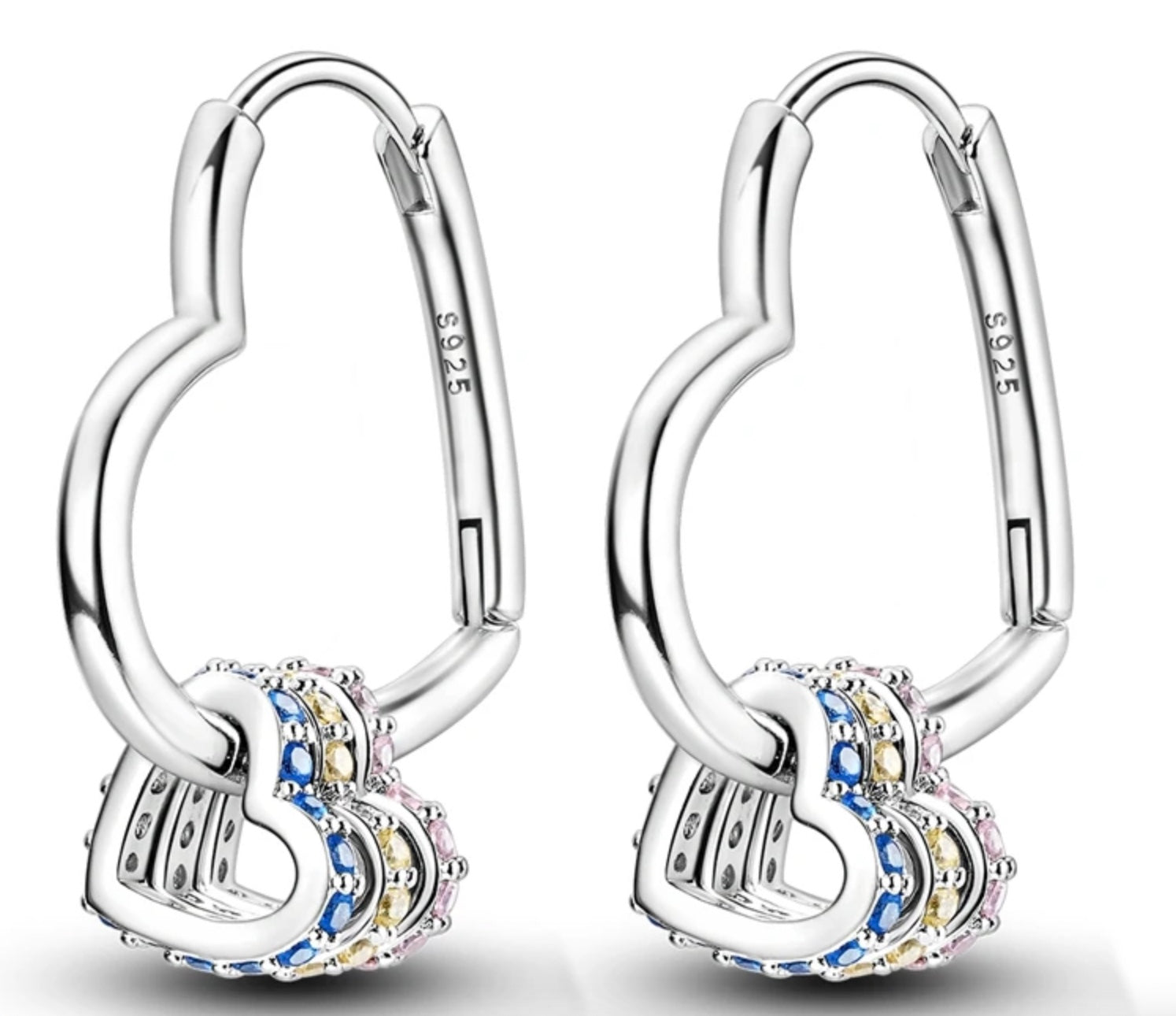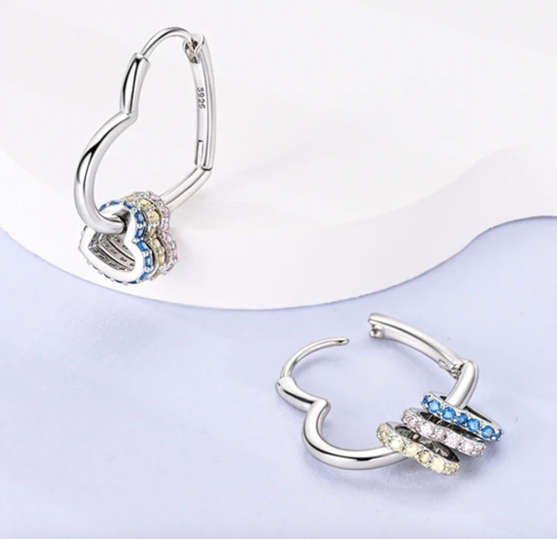 Sterling Silver Heart Shaped Hoop Earrings with Heart Shaped Coloured Fidgets